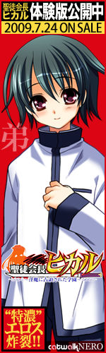 | ★ 聖徒会長ヒカル・応援バナーキャンペーン! 『聖徒会長ヒカル 〜淫魔に占領された学園〜』の応援バナーキャンペーン、開催中! HPやBlogをお持ちの皆様、ぜひともご参加ください! 参加方法は、とっても簡単! 以下にご用意しました応援バナーから、お好きなものをお貼りいただくだけです。 (バナー下のテキストボックス内にあるソースをコピーしてお使い下さい)