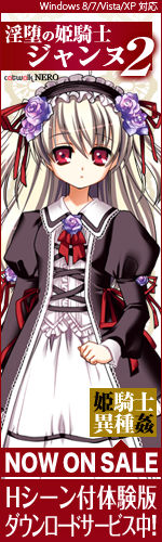 下記内容を2013年8月30日(金)までにメールでご連絡いただけた方が対象となります。 1) お名前(HN・ペンネーム可) 2) プレゼントご連絡先メールアドレス 3) バナー掲載URLアドレス 4) ご希望のキャラクター名 ご連絡先:catwalk@product.co.jp [件名:淫堕の姫騎士ジャンヌ2応援バナーキャンペーン] ●メール送信はこちらをクリック! そのほか、 スタッフへメッセージがございましたら、ぜひお願いいたします。 ※当選者さまには、メールでご連絡いたします。発送は2013年9月以降の予定です。 ●個人情報の扱いについて 今回のバナーキャンペーンでお寄せいただいた個人情報は、 ご協力感謝プレゼント送付時にのみ使用いたします。 ●大サイズ ![]() ![]() ![]() ![]() ![]() ![]() ●ブログサイズ ![]() ![]() ![]() ![]() ![]() ![]() ●縦サイズ ![]() ![]() ![]() ![]() ![]() ![]() ●中サイズ ![]() ●小サイズ ●お願い● バナーは随時更新されますので、極力お持ち帰りではなく、直リンクでお願い致します。 バナーのリンク先は http://catwalk.product.co.jp/nero/ にお願いいたします。 |