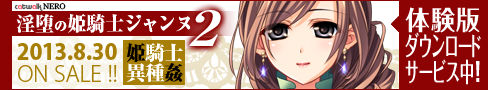 ![]() 『淫堕の姫騎士ジャンヌ2〜美姫転生〜2つの世界でオーガの仔種を注がれ続ける物語〜』の応援バナーキャンペーン、開催! HPやBlogをお持ちの皆様、ぜひともご参加ください! 参加方法は、とっても簡単! 以下にご用意しました応援バナーから、お好きなものをお貼りいただくだけです。 (バナー下のテキストボックス内にあるソースをコピーしてお使い下さい)