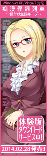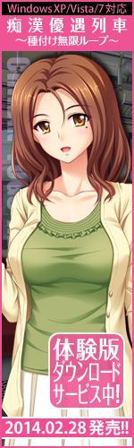 ![]() 『淫痴漢優遇列車 〜種付け無限ループ 永遠に止まらない学園都市環状線〜』の応援バナーキャンペーン、開催! HPやBlogをお持ちの皆様、ぜひともご参加ください! 参加方法は、とっても簡単! 以下にご用意しました応援バナーから、お好きなものをお貼りいただくだけです。 (バナー下のテキストボックス内にあるソースをコピーしてお使い下さい)