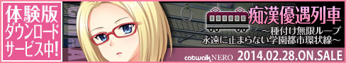 下記内容を2014年2月28日(金)までにメールでご連絡いただけた方が対象となります。 1) お名前(HN・ペンネーム可) 2) プレゼントご連絡先メールアドレス 3) バナー掲載URLアドレス 4) ご希望のキャラクター名 ご連絡先:catwalk@product.co.jp [件名:痴漢優遇列車応援バナーキャンペーン] ●メール送信はこちらをクリック! そのほか、 スタッフへメッセージがございましたら、ぜひお願いいたします。 ※当選者さまには、メールでご連絡いたします。発送は2014年3月以降の予定です。 ●個人情報の扱いについて 今回のバナーキャンペーンでお寄せいただいた個人情報は、 ご協力感謝プレゼント送付時にのみ使用いたします。 ●大サイズ ![]() ![]() ![]() ![]() ![]() ![]() ●ブログサイズ ![]() ![]() ![]() ![]() ![]() ![]() ●縦サイズ ![]() ![]() ![]() ![]() ![]() ![]() ●中サイズ ![]() ●お願い● バナーは随時更新されますので、極力お持ち帰りではなく、直リンクでお願い致します。 バナーのリンク先は http://catwalk.product.co.jp/nero/products/cn08/ にお願いいたします。 |