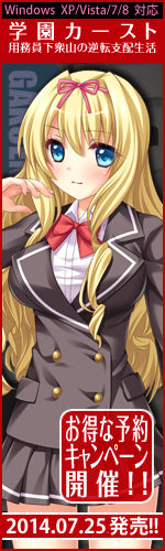 ![]() 『淫学園カースト 〜用務員 下衆山の逆転支配生活〜』の応援バナーをご用意しました。 Web pageやブログ、ツイッター等で自由にご使用ください。 使い方は、とっても簡単! 以下にご用意しました応援バナーから、お好きなものをお貼りいただくだけです。 (バナー下のテキストボックス内にあるソースをコピーしてお使い下さい) ●大サイズ ![]() ![]() ![]() ![]() ![]() ●ブログサイズ ![]() ![]() ![]() ![]() ![]() ●縦サイズ ![]() ![]() ![]() ![]() ![]() ![]() ●中サイズ ![]() ●お願い● バナーは随時更新されますので、極力お持ち帰りではなく、直リンクでお願い致します。 バナーのリンク先は http://catwalk.product.co.jp/nero/products/cn09/ にお願いいたします。 |